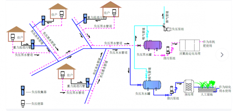 关键设备:真空泵、负压管道、污水收集井(带气动阀门)。